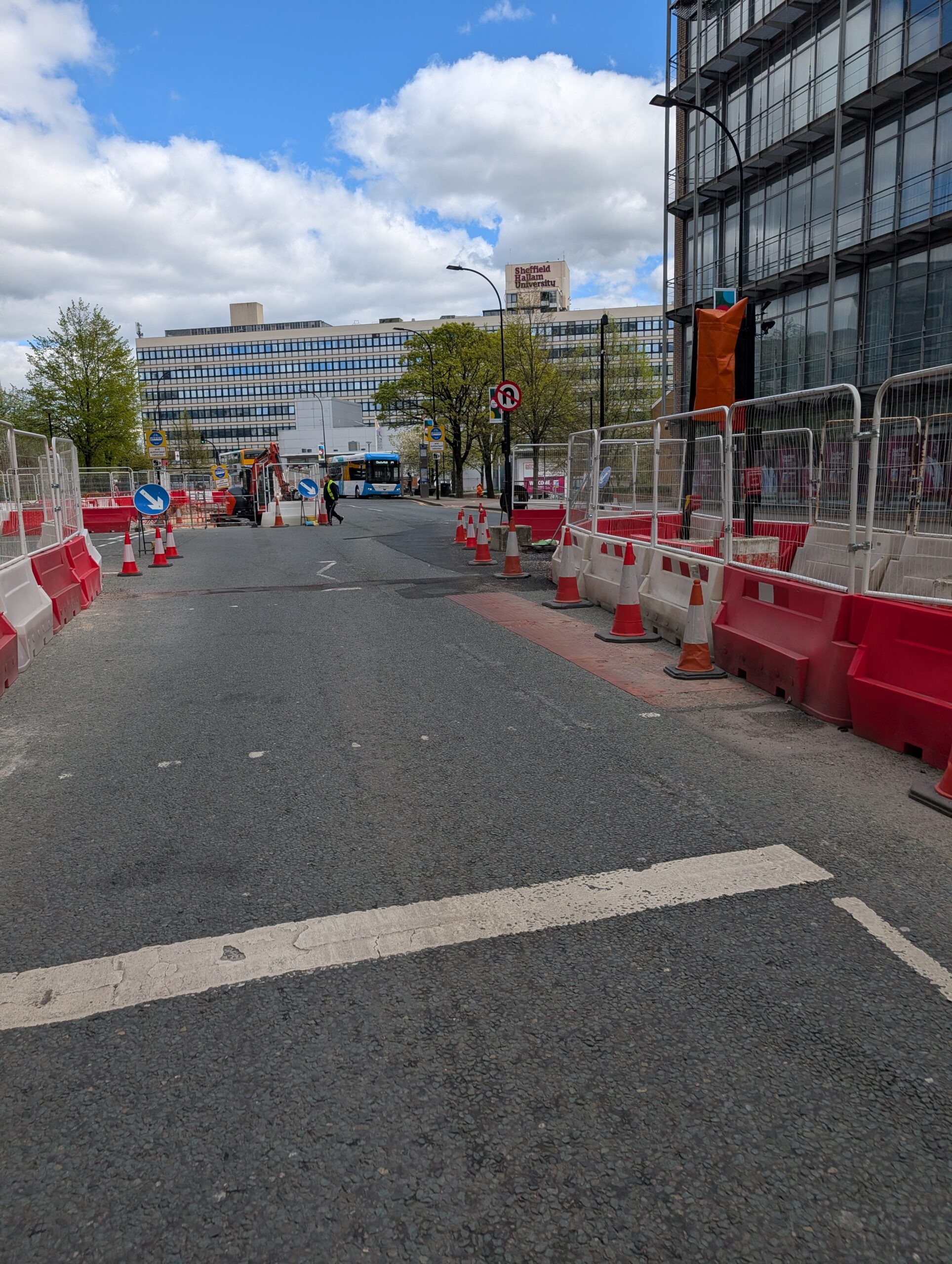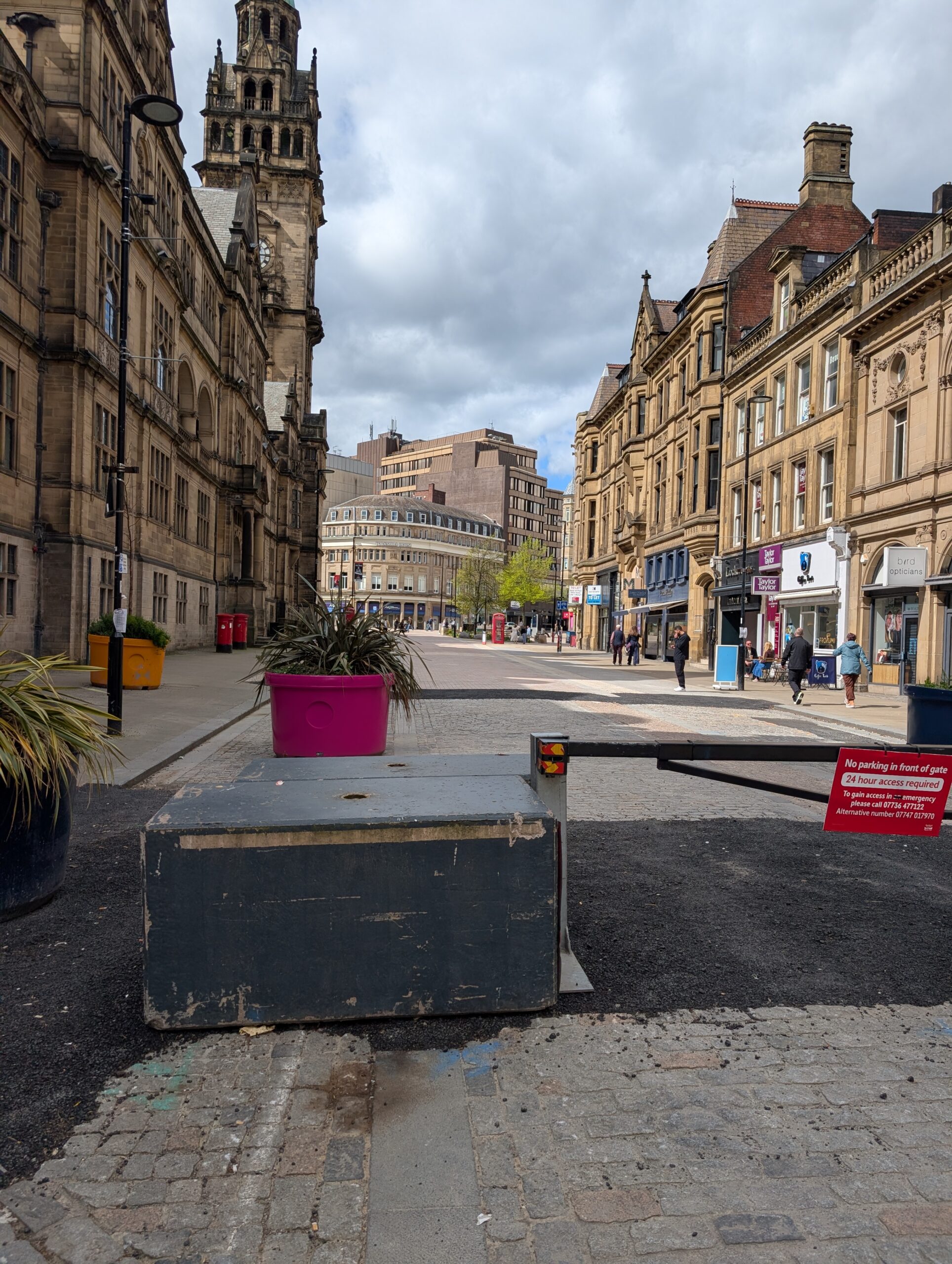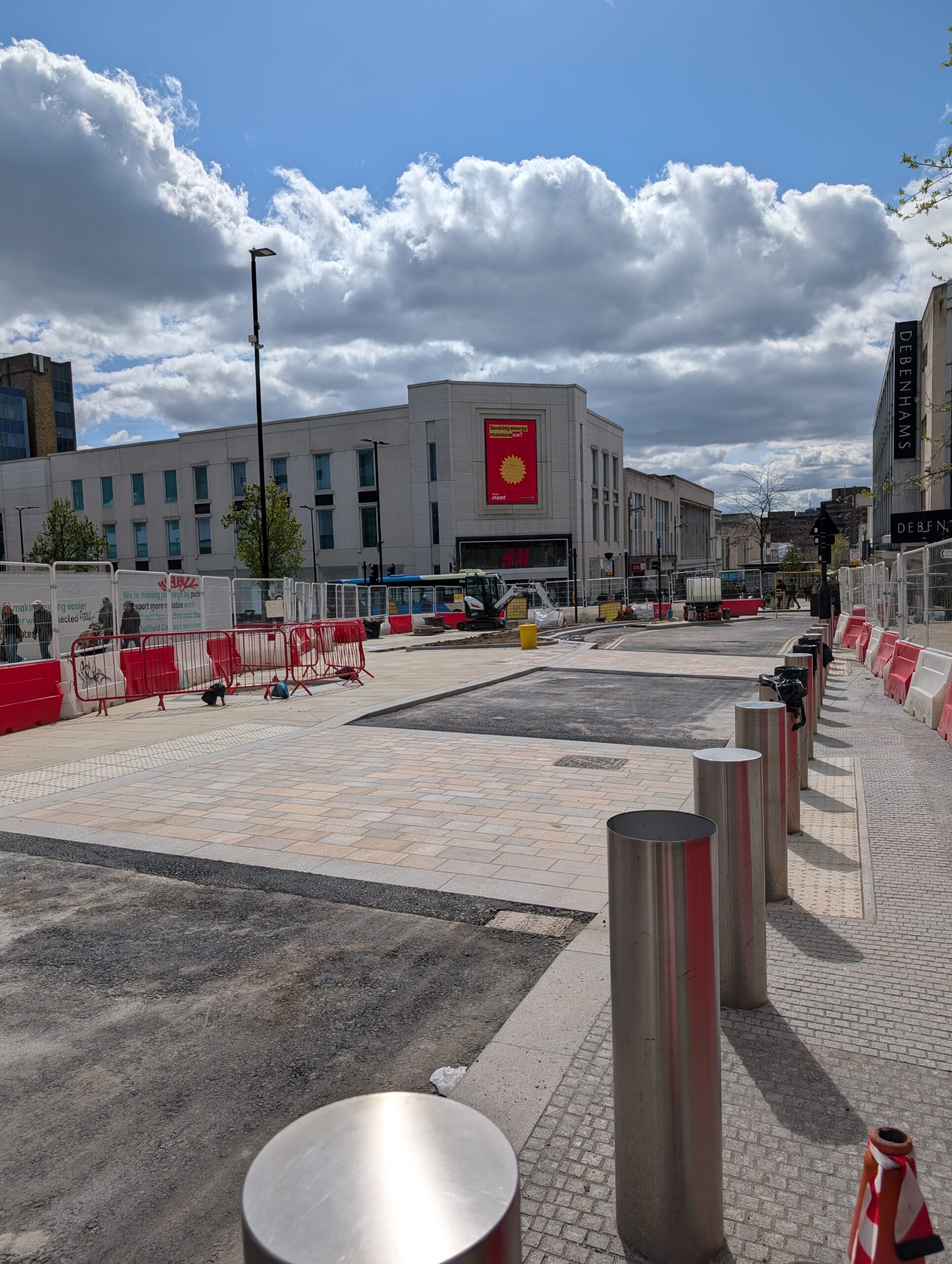 The pedestrianisation of Pinstone Street outside the Radisson Blu continues.