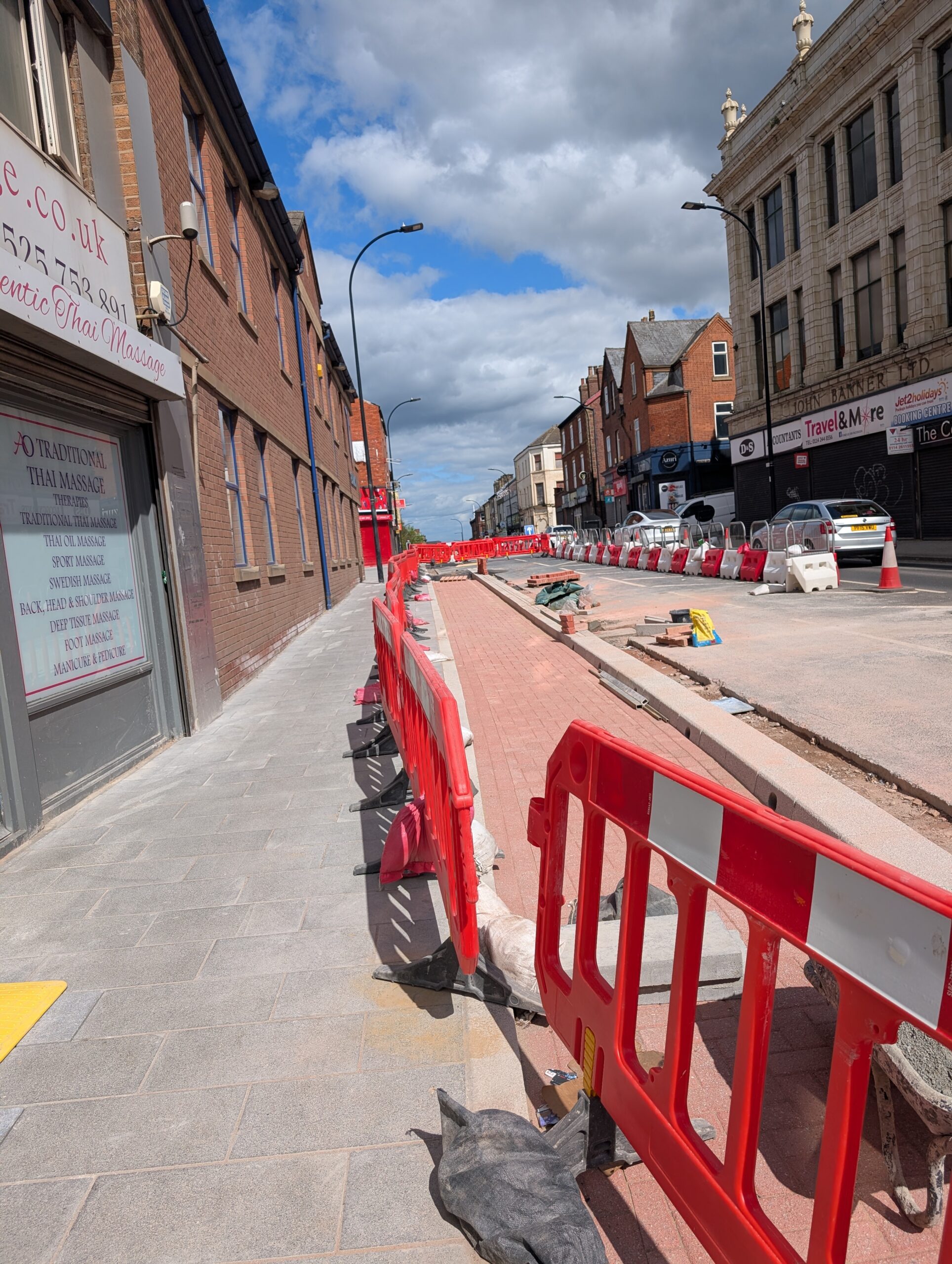 The pedestrianisation of Surrey Street is nearly complete, with a few more metres to go. There is a temporary surface in place on parts of it which is due to be finished after the World Snooker Championships.